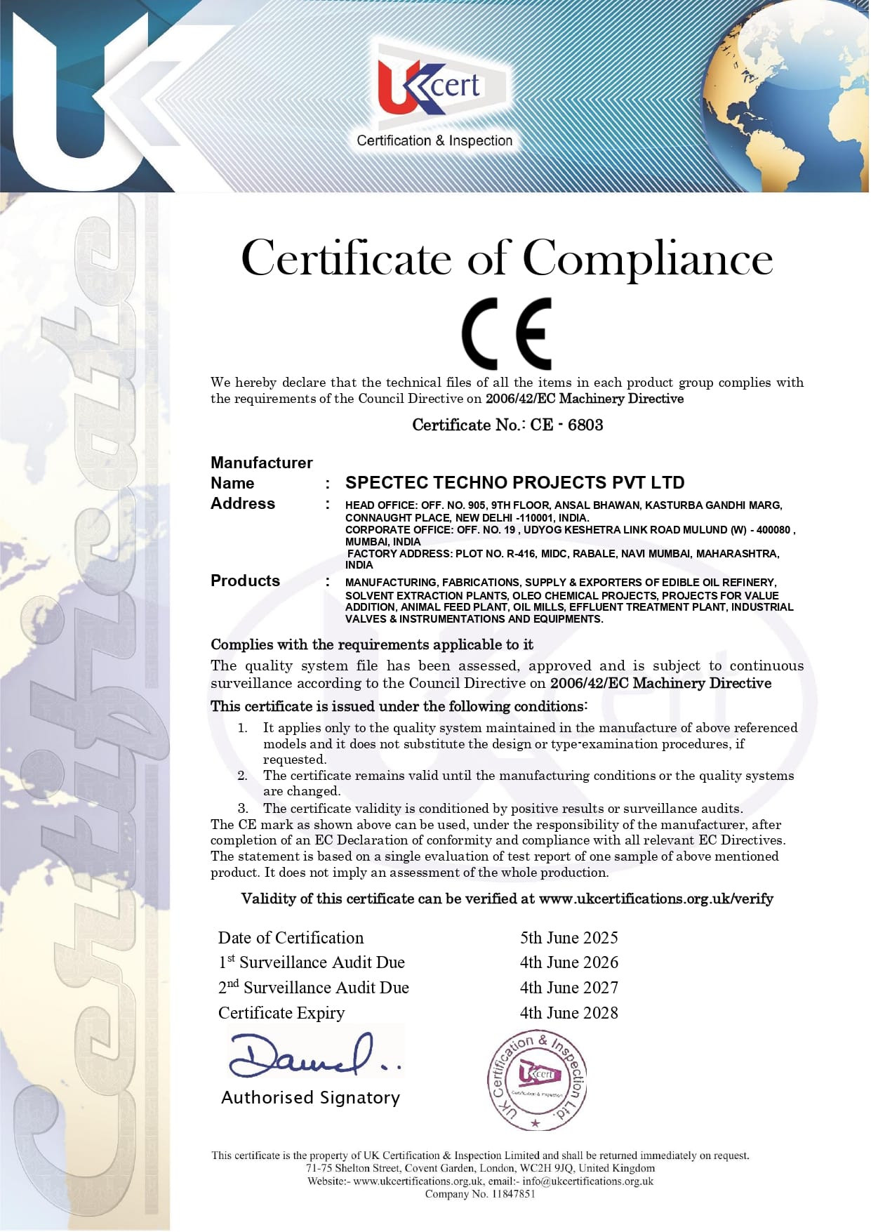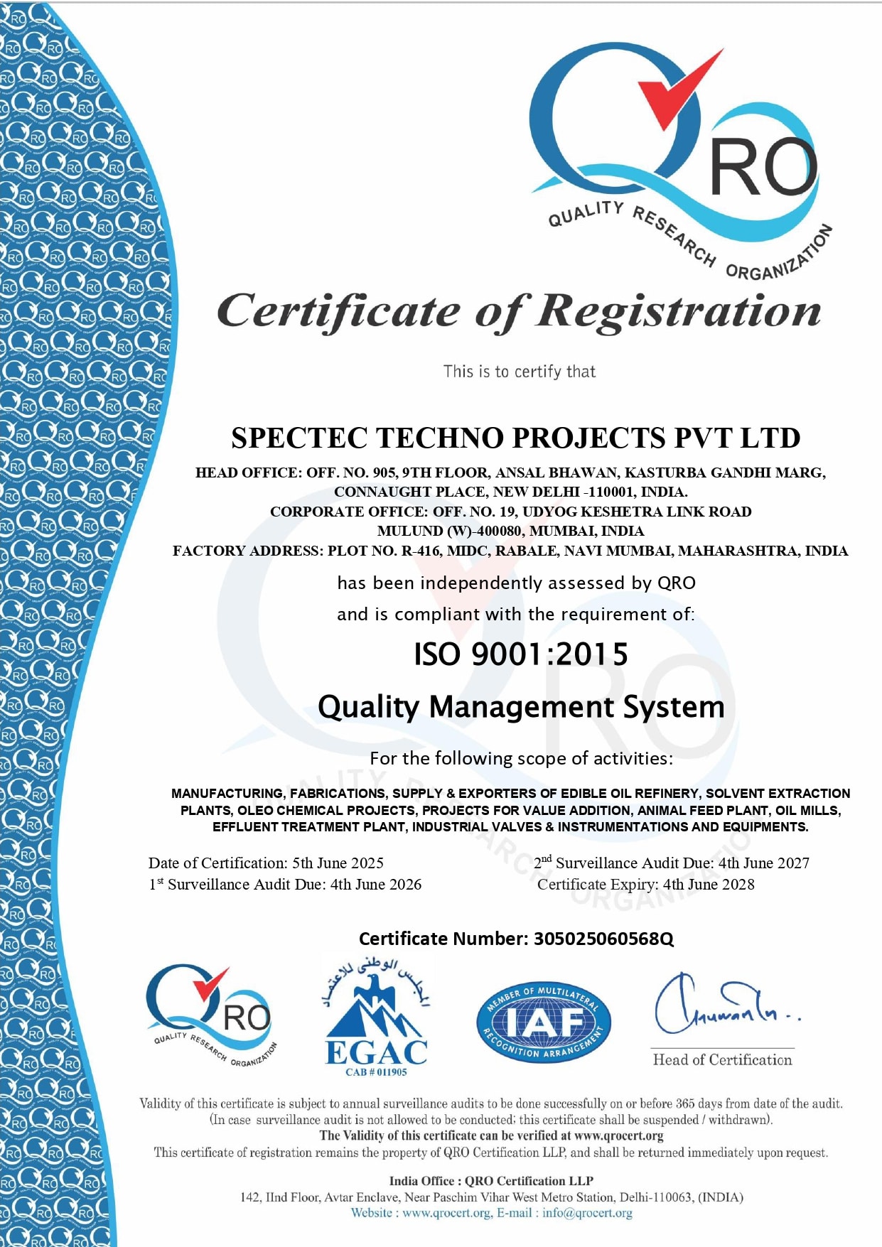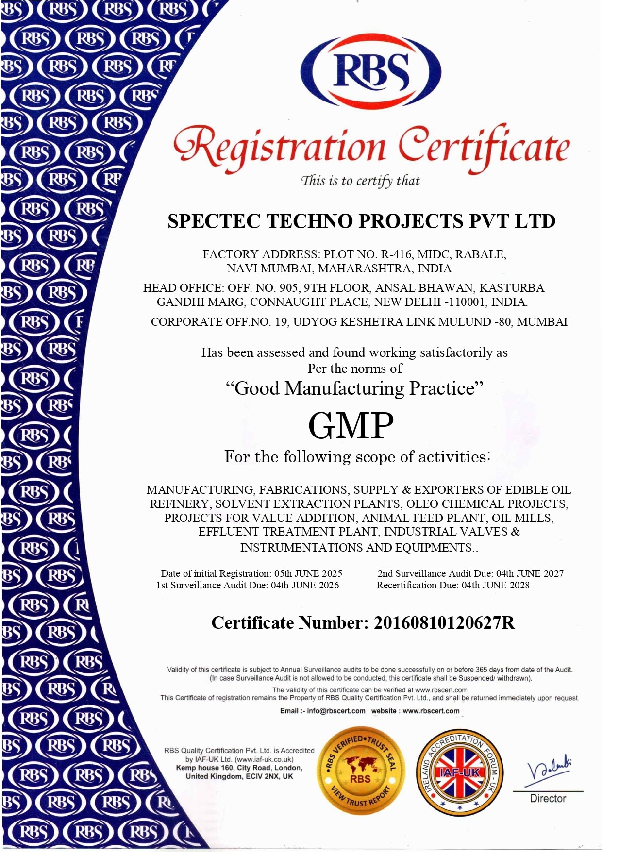 Spectec Techno Projects Pvt. Limited, is certified with ISO 9001, CE, OSHAS & GMP