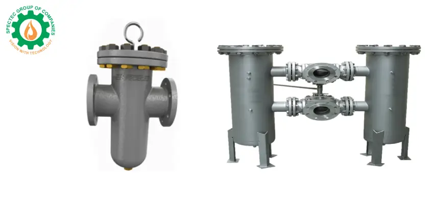 Strainers are vertical vessels made of either CS (Carbon Steel) or SS (Stainless Steel) with wire filter element in SS and rotating brush inside, made of taflon. The strainers are predominately used for removing unwanted particles from crude oil. After the filtration the sediments are discharged from the bottom of the vessel.